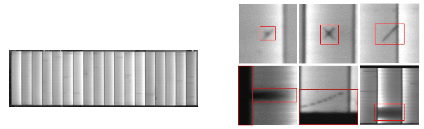 Broken gate, electric leakage, black chips, edge absence, cracked chips (including tiny hidden cracks, cross hidden cracks, arc cracks, through-chip cracks, explosion cracks), incomplete solder and short circuit.