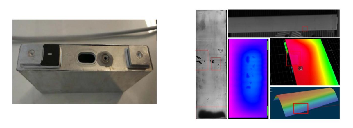 The battery manufacturer of this project requires the inspection of product appearance before shipment to ensure a "zero defect rate" of the shipped products. However, there are many types of defects in the appearance of prismatic cells, including blue film bubbles, dents and bumps, wrinkles, breakage, and 40 types of other defects; a wide variety of defects, including some defects requiring depth information; high acceptance requirements and the need to consider the size and depth of the defect area, which cannot be solved by the existing visual inspection solutions.
